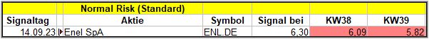 Immerhin gab es in dieser Woche mit „Enel SpA“ 1 Signal im Normal-Risk-Screener und 2 weitere Signale im High-Risk-Screener sahen wir ebenfalls. Letztere werde ich aber erst in 4 Wochen bewerten.