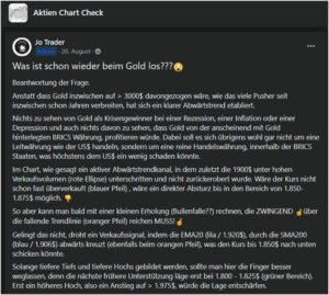 hier mal wieder ein Update für Gold anhand des Goldspots. Wer mich länger kennt weiß, dass ich das gar nicht gerne mache. Gold und Silber nerven mich irgendwie, weil nichts dabei herauskommt…oder?