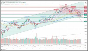 Nach oben muss man das GAP oberhalb der EMA20 im Auge behalten, denn sollte dieses überschritten werden, wäre ein Besuch der oberen Grenze des fallenden Kanals, bei rund 4.450$ möglich. Aber noch ist der fallende Kanal aktiv!