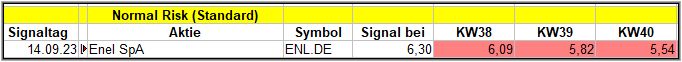 Immerhin gab es in dieser Woche mit „Enel SpA“ 1 Signal im Normal-Risk-Screener und 2 weitere Signale im High-Risk-Screener sahen wir ebenfalls. Letztere werde ich aber erst in 4 Wochen bewerten.