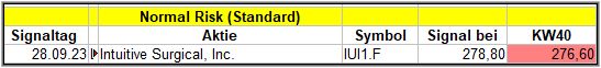 Nun kommen wir zum Update der vorigen Screener-Ergebnisse aus der KW36, KW37, KW38 und KW39, bezogen auf die Schlusskurse in KW40/23. KW35/23 fällt in dieser Woche weg.
