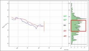 - Die höchste Spitze liegt im Bereich von 17,40€, aber außerhalb des Wahrscheinlichkeitsraster (roter Rahmen).
