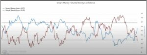 Übrigens zeigen die Daten oben das an, was ich während der Woche schon in Facebook geschrieben hatte, dass das Smartmoney (blau) wieder in den Markt zurückkehrt, während das Dumb Money (rot), in Scharen aus dem Markt flüchtet. Immer das gleich Spiel und immer fallen die Gleichen darauf herein