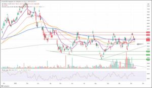 Der Kurs war im August bis auf rund 53,50€ eingebrochen, konnte sich aber zwischenzeitlich wieder bis auf >60€ erholen.