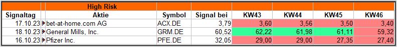 Auch die High-Risk Signal aus dieser Woche scheiterten bzw. endeten nach 4 Wochen im Minus.