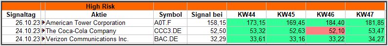 Ganz anders zeigte sich der Verlauf bei den High-Risk Signalen aus dieser Woche, denn diese schlossen nach 4 Wochen Laufzeit, alle im Plus.