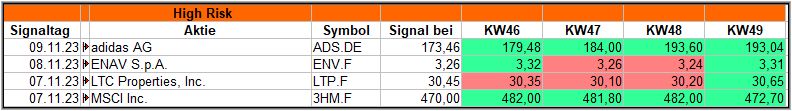 Bei den High-Risk-Signale sah es ebenfalls gut aus, auch wenn 2 davon zwischendurch einmal etwas schwächelten. Aber auch hier hätten wir gute Gewinne erzielen können.
