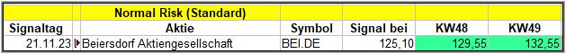 Trotzdem gab es mehrere Signale in den verschiedenen Screenern, aber nur 1 Signal im Standard Screener (nachfolgend) und das war die Aktie von Beiersdorf.