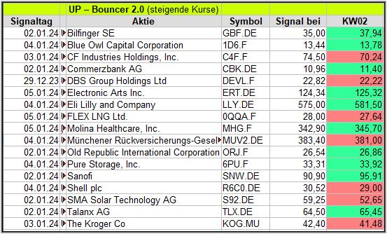 Angesichts des hohen Aufkommens an generierten Signalen, werde ich vermutlich keine 4-wöchentliche Beobachtung durchführen können, weil das einfach extrem viel Zeit kostet. Vielleicht beschränke ich mich bei den Updates auch nur auf die Signale mit steigendem Trend.