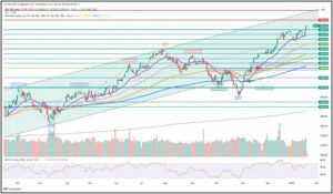Entscheidend dafür ob es gelingt jetzt die 4.900$ zu erreichen , dürften a.) vermutlich die Unternehmenszahlen in der kommenden Woche (Berichtsaison) und b) der überkaufte Zustand, werden. Bisher ist der Kurs noch nicht überkauft, aber bei 4.900$ dürfte das anders sein, es sei denn der Kurs legt wieder eine kleine Seitwärtsbewegung ein, damit es zu einer Abkühlung kommt.