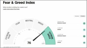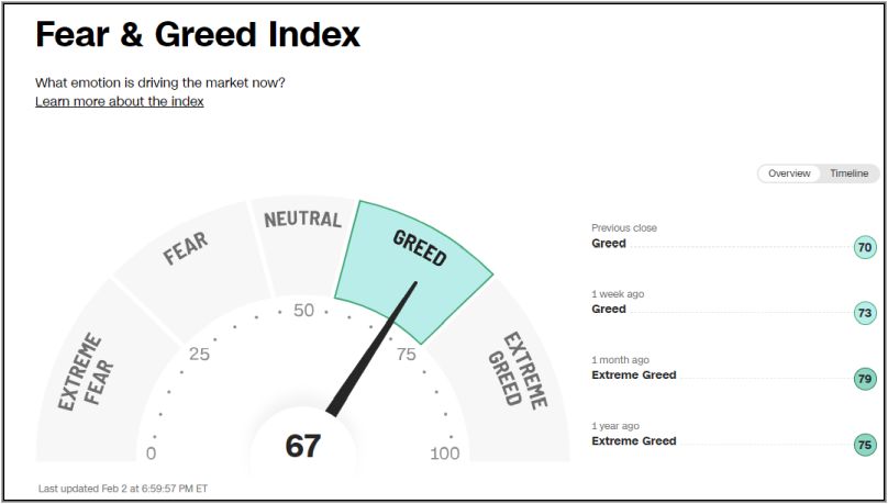 Der Fear & Greed Index liegt im mittleren Bereich der Gier und konnte aim Vergleich zur Vorwoche, etwas abkühlen. Möglicherweise war das Dumb-Money, das hektisch verkauft hat, die Ursache, für den sinkenden Status. Smart-Money geht da viel vorsichtiger vor.