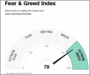 Der Fear & Greed Index liegt im Bereich der extremen Gier was ebenfalls zum Gesamtbild passt und fast schon nach einer Abkühlung schreit.