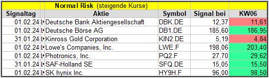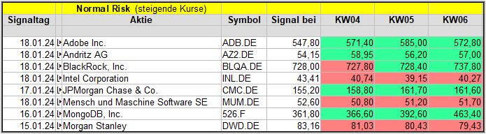 In dieser Woche gab es 7 Signale. Nach der 1. Woche liegen 5 der 7 Werte im Plus.