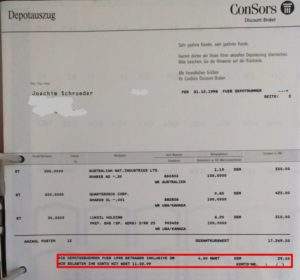 Ab 1983 habe ich damals über die Volksbank Triberg-Hornberg, mit dem eigentlichen Handeln begonnen, was damals nur per Telefon möglich war. Eine Kauforder kostete rund 29DM (später 57 DM) und auch das Depot war längst nicht kostenlos.