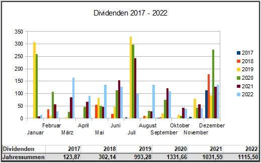 Bis August 2017 hatte ich keine Dividendenbringer, sondern setzte voll auf Wachstum. Aber wie Du in der Grafik siehst, hat sich das etwas geändert und die Dividenden-Einnahmen, haben sich seitdem vervielfacht.