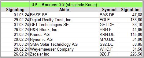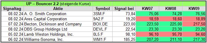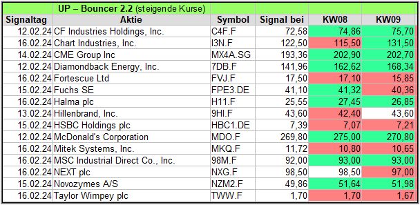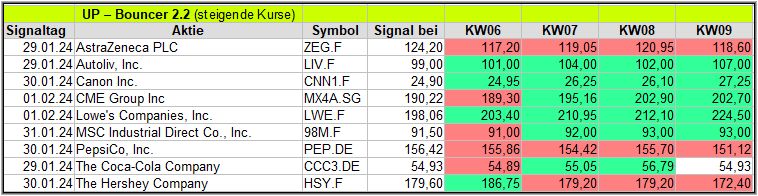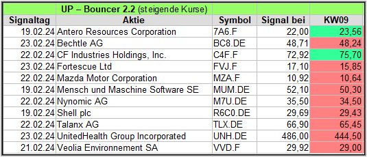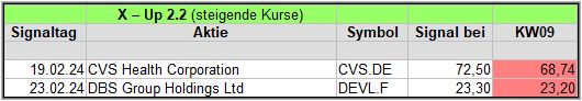 In dieser Woche gab es 2 X-Up-Bouncer Signale, mal sehen, wie diese sich während den kommenden 4 Wochen schlagen werden.