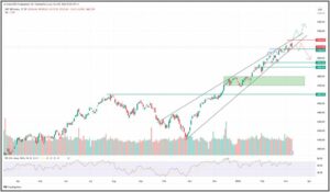 Die US Märkte profitierten am Freitag von der Aussage Powells, der ziemlich klar die Chance auf baldige Zinssenkungen erklärte. So rechnen die Märkte mit der ersten Senkung im Juni, was nun stetig in die Märkte eingepreist wird oder schon wurde.