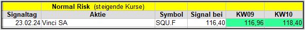 Wir hatte 3 Signale und alles Deutsche Werte, was möglicherweise meine Aussage stützt, dass die US-Anleger gerne nach Europa ausweichen, wenn sie in den USA eine Korrektur erwarten. Mal sehen ob sich das bestätigen wird in den nächsten 3 Wochen.