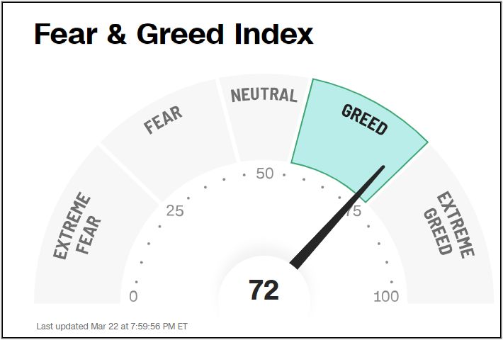 Am Mittwoch /Donnerstag hatte er zeitweise im Bereich der extremen Gier gelegen, ist dann aber wieder etwas zurückgekommen.