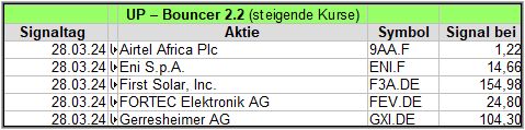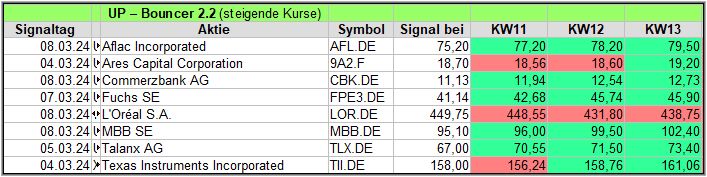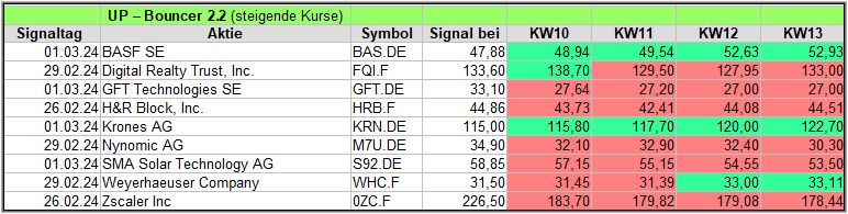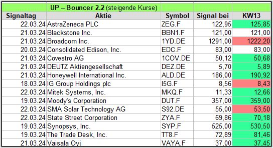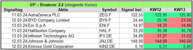 Hier eine kurze Übersicht über die Down-Bouncer Signale, die es diese Woche gab. Vorwoche in ().