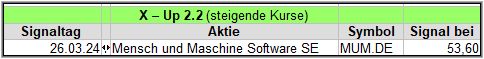 Rückblick: Wie schon in der Vorwoche gab es nur 1 Signal und das auch noch ausgerechnet aus dem Tech-Bereich.