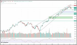 Der S&P500 hat seine Keilformation nicht wieder betreten können und folgt aktuell dem skizzierten Trend abwärts.