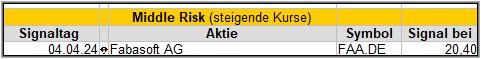 Der Screener hat kein Standard Signal gefunden und so verwende ich das Middle-Risk-Signal.