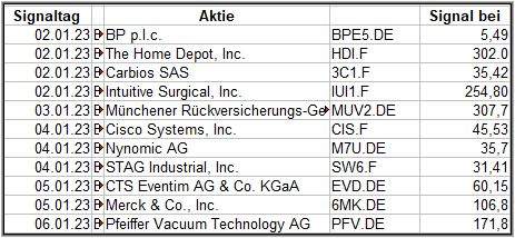 Nun kommen wir zum Update der vorigen Screener-Ergebnisse aus der KW49, KW45, KW51 und KW52, bezogen auf die Kurse in KW01/23. KW48/22 fällt in dieser Woche weg.