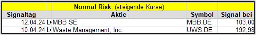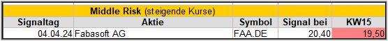 Der Screener hat kein Standard Signal gefunden und so verwende ich das Middle-Risk-Signal.