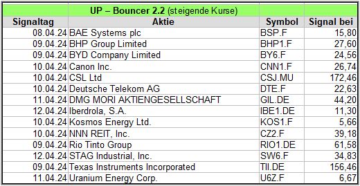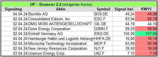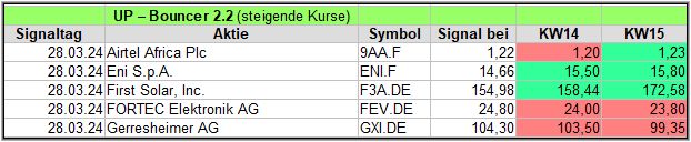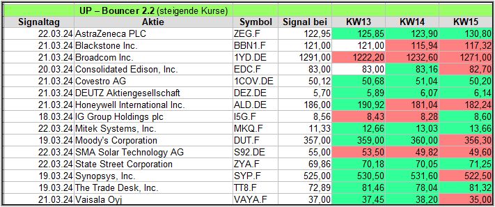 Hier eine kurze Übersicht über die Down-Bouncer Signale, die es diese Woche gab. Vorwoche in ().