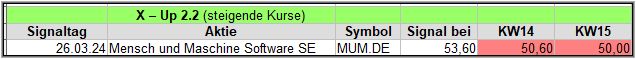 Rückblick: Wie schon in der Vorwoche gab es nur 1 Signal und das auch noch ausgerechnet aus dem Tech-Bereich.