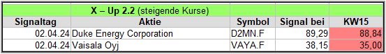 Rückblick:In der etwas schwierigen KW14, in der am Donnerstag S&P500, Nasdaq und Dow Jones etwas deutlicher abgaben, wurden überraschenderweise doch 2 Signale generiert.