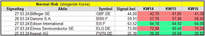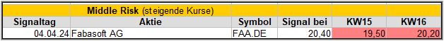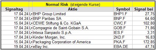 Der Screener hat kein Standard Signal gefunden und so verwende ich das Middle-Risk-Signal.