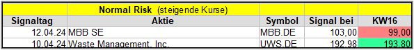 In dieser Woche gab es 2 Signale