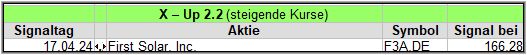 Dieser Screener setzt auf steigende Kurse , die Signale können einen schnellen, kurzen Schub inkl. Fehlausbruch, aber auch einen bevorstehenden Trend nach oben anzeigen, was das gewünschte Ziel ist. Mit der Chance steigt allerdings wie immer, auch das Risiko!
