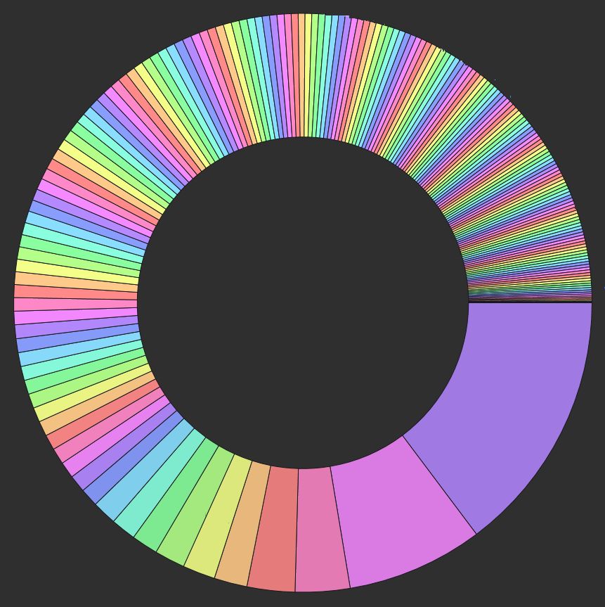 Als kleines Gimmick hier mal die Rainbow-Darstellung meiner Aktien, im selbstgebauten Weltdepot, Stand 01.05.24