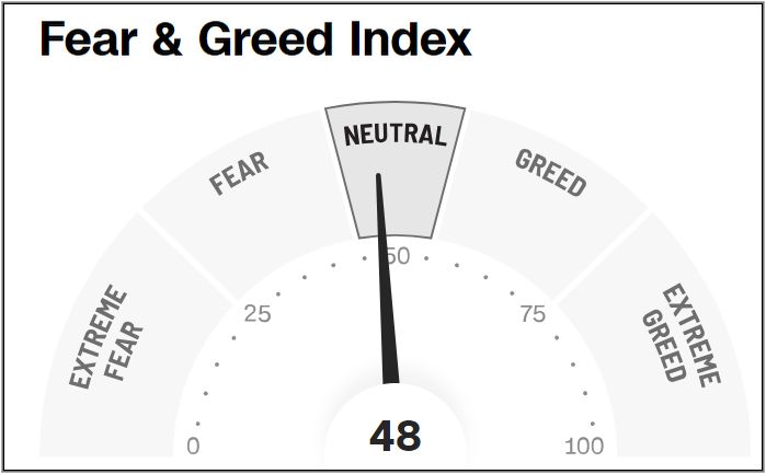 Der Fear & Greed Index hat sich nun in den neutralen Bereich erholt und liegt nach 40 Punkten aus der KW18, bei 48 Punkten.