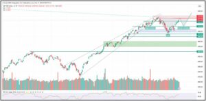 Nachdem auch in dieser Woche schwache Arbeitslosenzahlen die Anleger in ihrer Hoffnung unterstützten, dass schon bald eine Zinssenkung folgen wird, setzten massive Käufe ein, welche den Kurs am Freitag bis auf 5.229$ ansteigen haben lassen. Es fehlt also nicht mehr viel zum Allzeithoch (fette rote Linie im Chart).