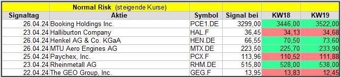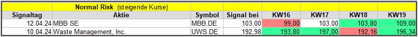 Hinweis: Ich kann nur hinweisen, dass man die Signale während der Berichtsaison, welche in der KW15 begonnen hat, noch kritischer beäugt, da eine Dividendenausschüttung und Meldungen, den einen oder anderen Werte „ungeplant“ in Verkaufssignale hineindrücken könnte, so dass der Kurs um ein mehrfaches der Dividende nachgibt! ☝️☝️☝️