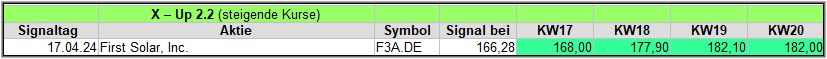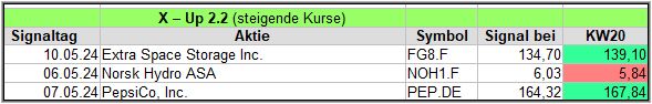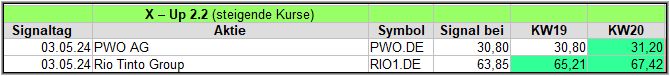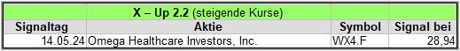 Der eher etwas schwerfällige X-UP Screener, hat in dieser Woche nur 1 Signal gefunden, doch sofern das gut ist, ist es auch gut (schlauer Spruch gell?)