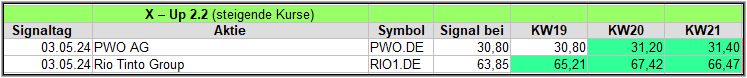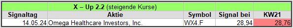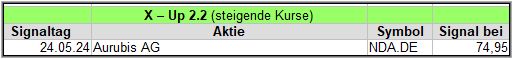 Der eher etwas schwerfällige X-UP Screener, hat in dieser Woche nur 1 Signal gefunden, doch sofern das gut ist, ist es auch gut (schlauer Spruch gell?)