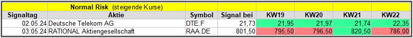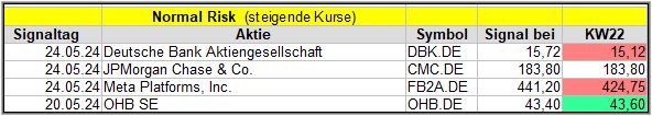 Wie schon oben geschrieben, war ie Woche nicht einfach und auch die KW22 ist eher negativ für die Märkte gewesen, so dass diese Woche Druck auf alle Signale ausüben dürfte.