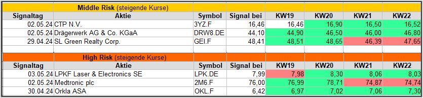 Von den 3 Middle-Risk-Signalen liegen nach 4 Wochen immerhin 2 im Plus.