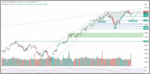 Geht es aber in den genannten Bereich nach unten und spätestens bei der 5.100$ Marke wieder nach oben, könnte die Inverse S-K-S in Richtung neuer Allzeithochs durchstarten, so dass es vorerst in den Bereich von 5.400 – 5.500$ gehen könnte.