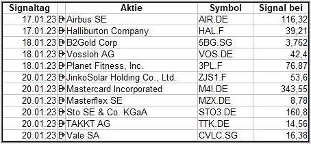Ab dieser Woche arbeitet der Screener mit verschärften Parametern, wobei trotzdem einige Signale generiert wurden.