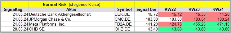 Wie schon oben geschrieben, war die Woche nicht einfach und auch die KW22 ist eher negativ für die Märkte gewesen, so dass diese Woche Druck auf alle Signale ausüben dürfte.