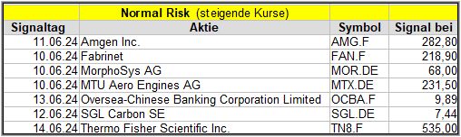 Im Normal Risk Screener gab es 4 Signale.