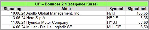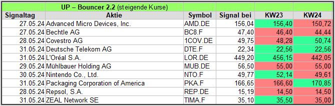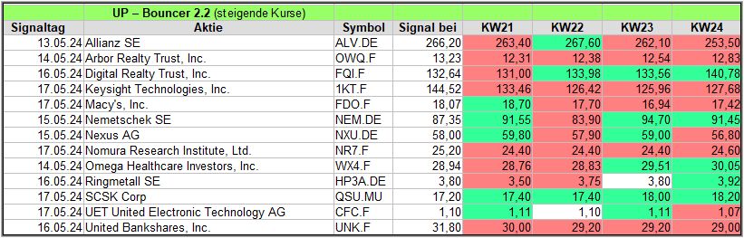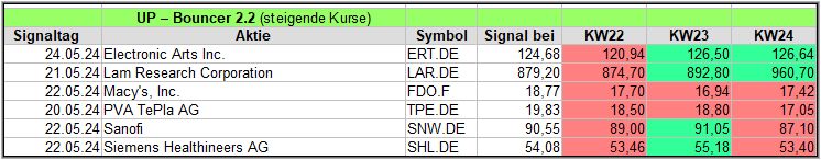 Rückblick: In dieser Woche gab es eine Menge UP-Bouncer Signale, was darauf hindeutet, dass viele Anleger auch in der 2. Reihe einsteigen.