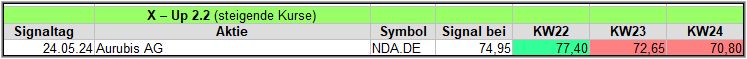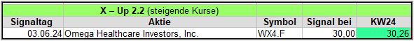Der eher etwas schwerfällige X-UP Screener, hat in dieser Woche nur 1 Signal gefunden, doch sofern das gut ist, ist es auch gut (schlauer Spruch gell?)