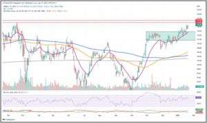 Besonders wenn der Kurs nach einem Ausbruch überkauft wäre, wäre es wichtig, dass er über den erwähnten Marken konsolidiert, damit es keinen deutlichen Rücksetzer gibt.